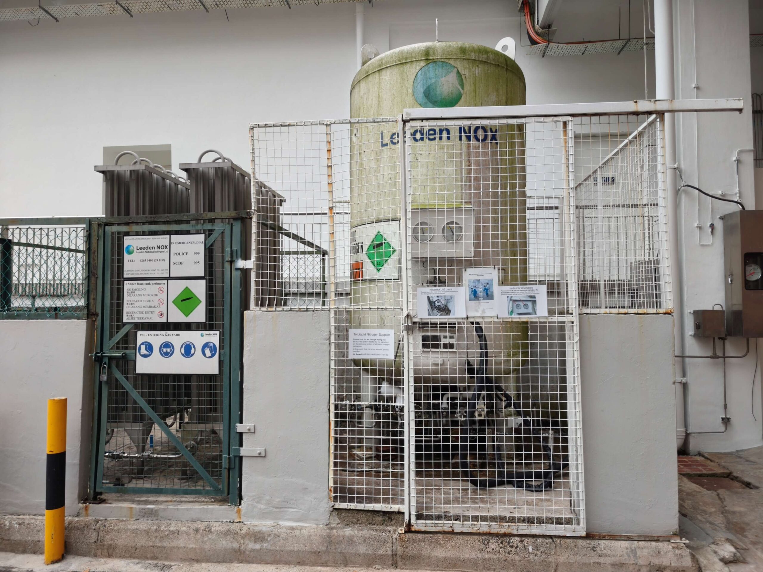 - In the event of an emergency relating to the LN2 storage facility, contact Leeden NOX’s Customer Hotline at 62650406 for assistance first, then inform staff-in-charge, if you are in the situation to do so.