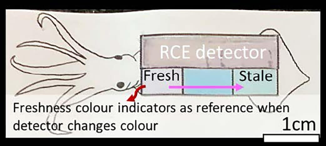 Food waste turned freshness detector for squid (RCE) is developed in this project. pH sensitivity of the detector and its ease of application allow this prototype to be more attractive to the elderly, keeping them healthy by keeping tab on the freshness of their food source.